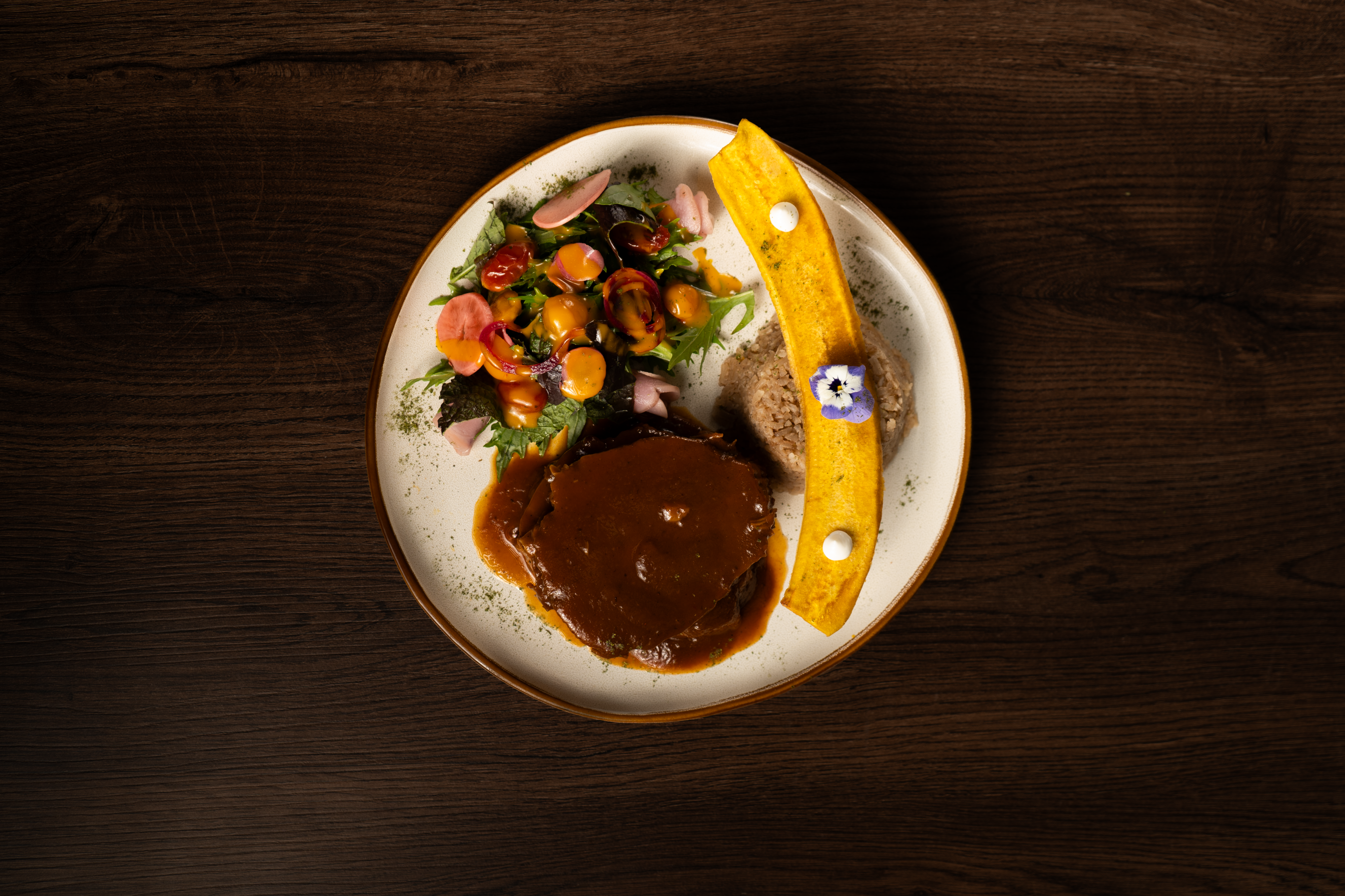 Acompañada de tu elección de arroz blanco o titoté, crujientes chips de plátano y una fresca ensaladilla, la Posta Cartagenera es el equilibrio perfecto entre lo tradicional y lo sofisticado, ideal para quienes buscan deleitarse con un plato lleno de historia y sabor.